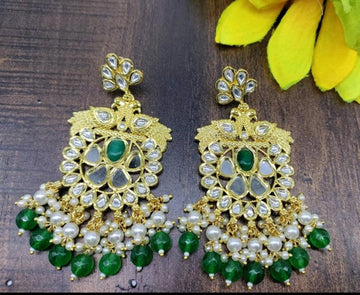Gold plated glass kundan jewellery . Embellished with kundan, pearls ,ruby , green and colour beads. it also known as Punjabi Jewelery