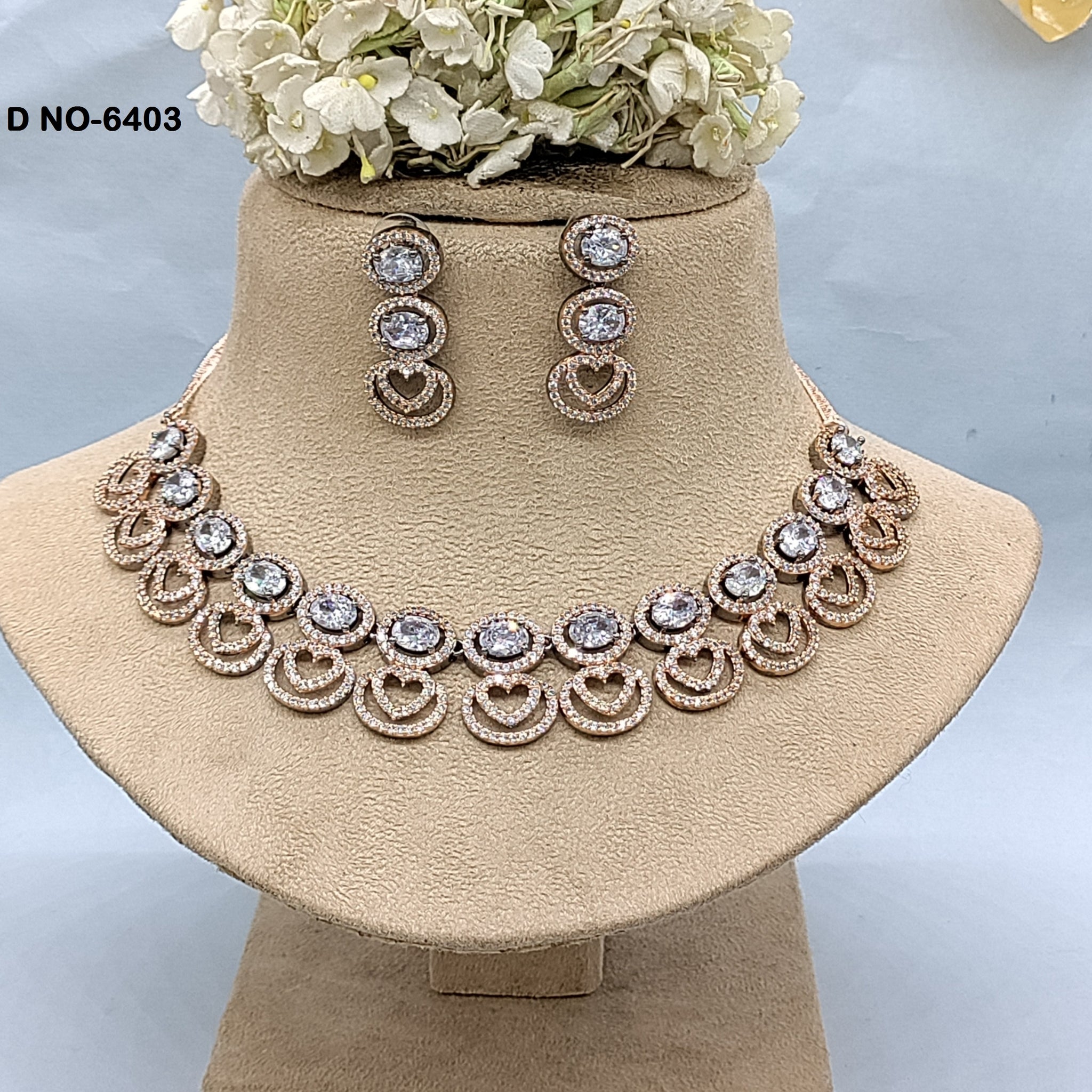 Two Tone American Diamond Necklace Sku-6403 C-6