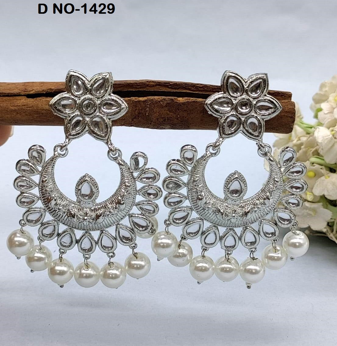 Rodium Polki Kundan Earrings (Sku-1429A1) showcase a beautiful combination of elegant rodium and intricate polki kundan work. With their unique design, these earrings make for a stunning addition to any jewelry collection. Experience the perfect blend of traditional and contemporary styles with these exquisite earrings.