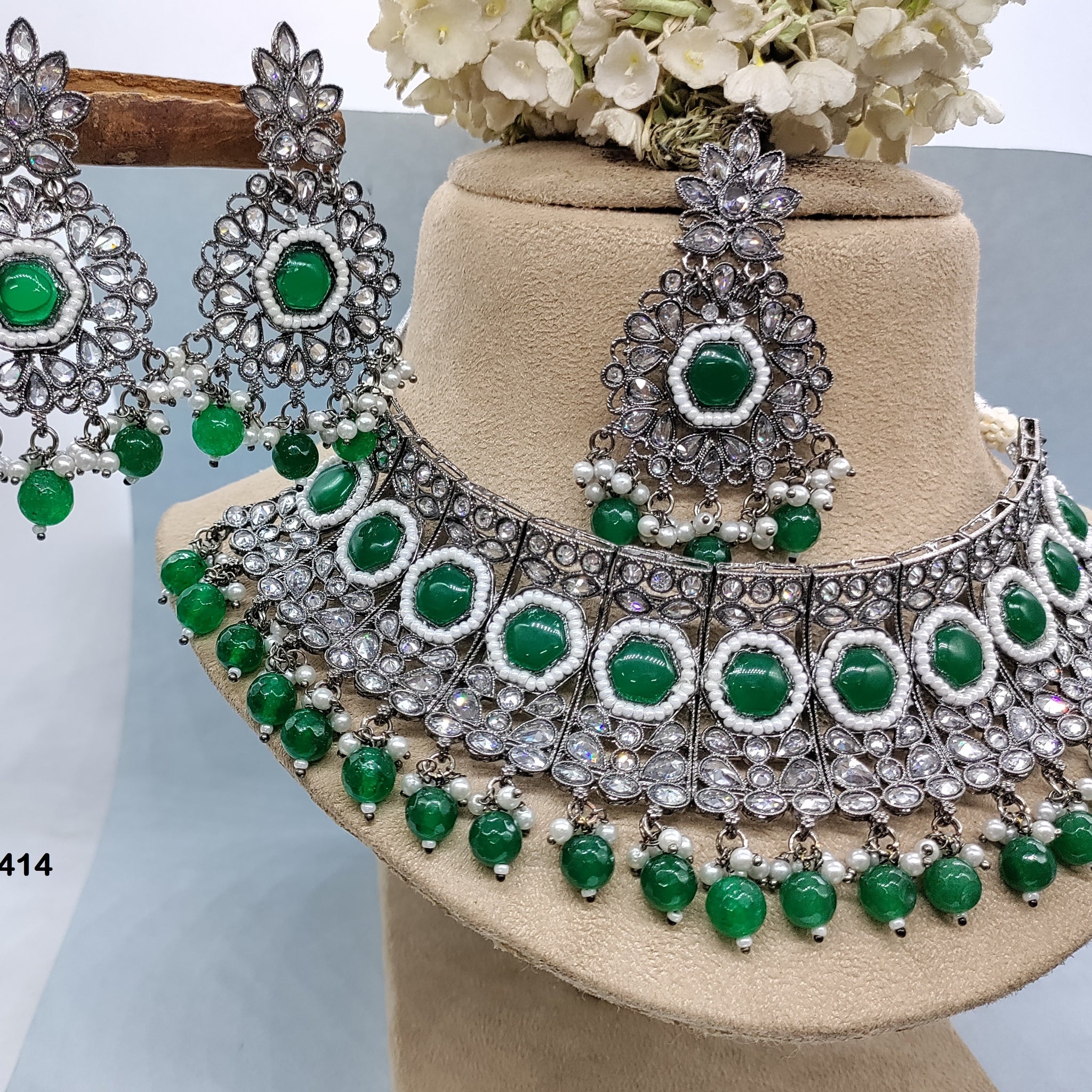 Victorian White Polki Necklace Sku-6414 B6